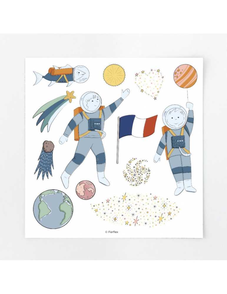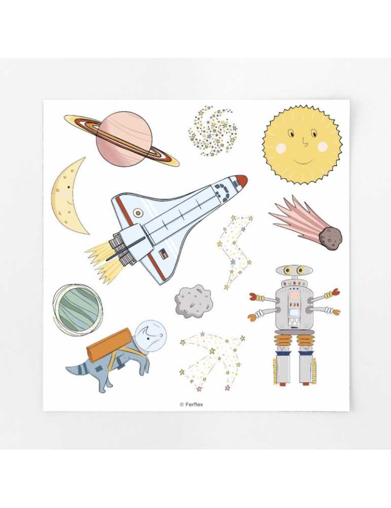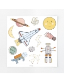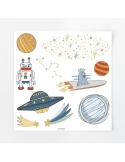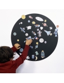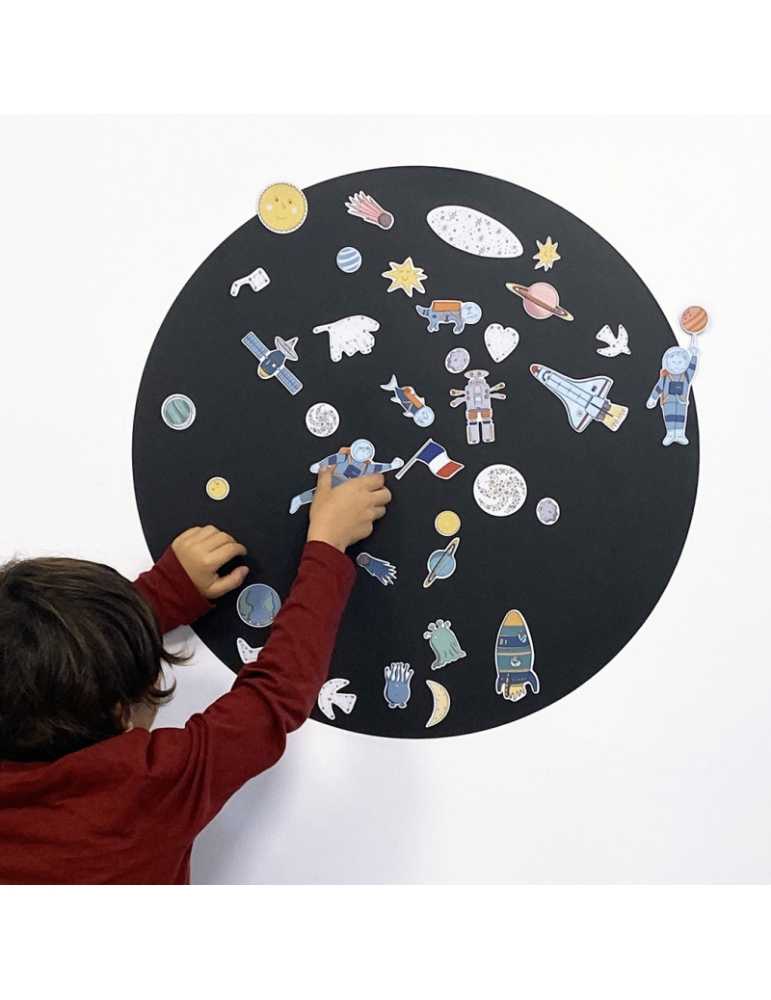 Un jeu divertissant composé de 49 magnets pour partir à la conquête de l'espace, avec lequel les enfants vont pouvoir reproduire des scènes ou inventer des histoires.