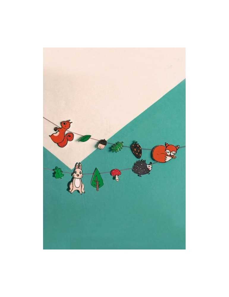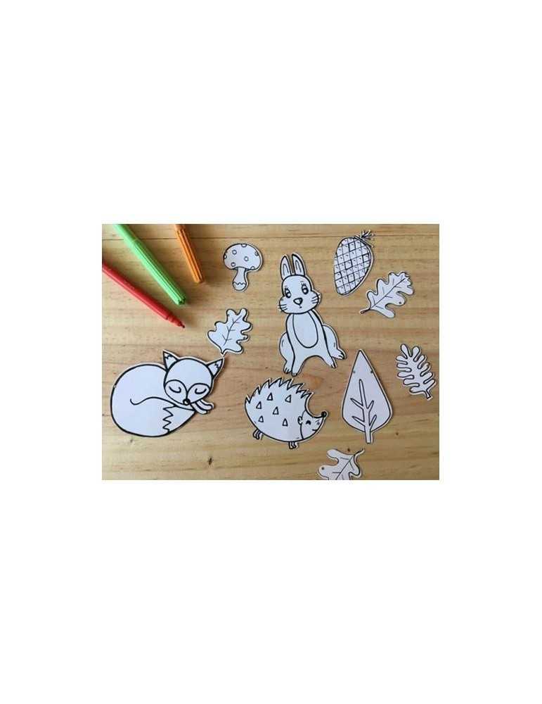 Ce kit contient 24 formes d'animaux et de végétaux prédécoupées à colorier et à assembler pour créer une magnifique guirlande.