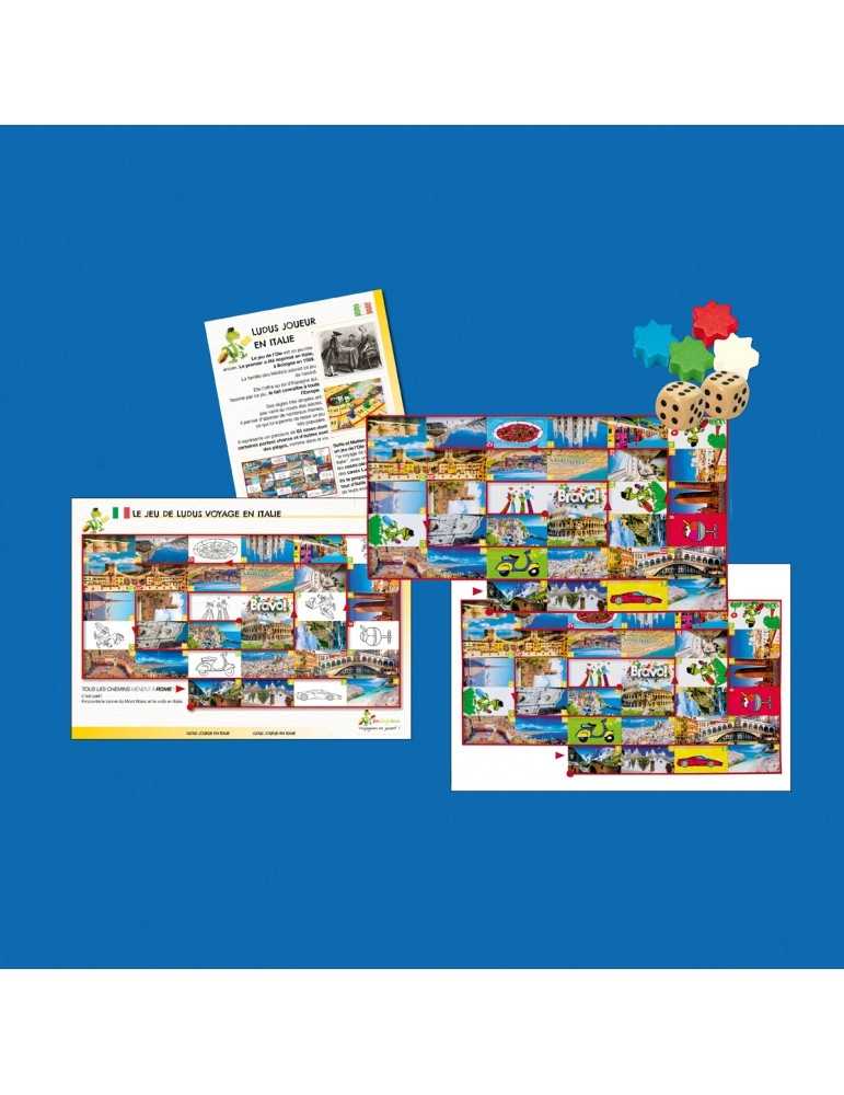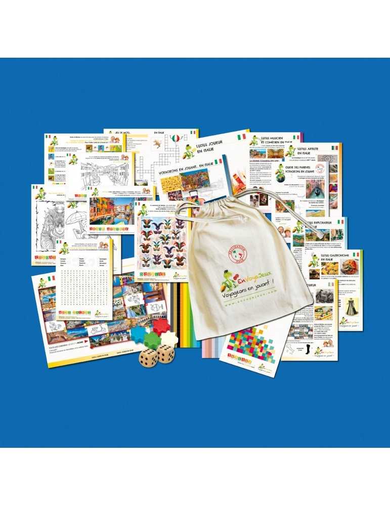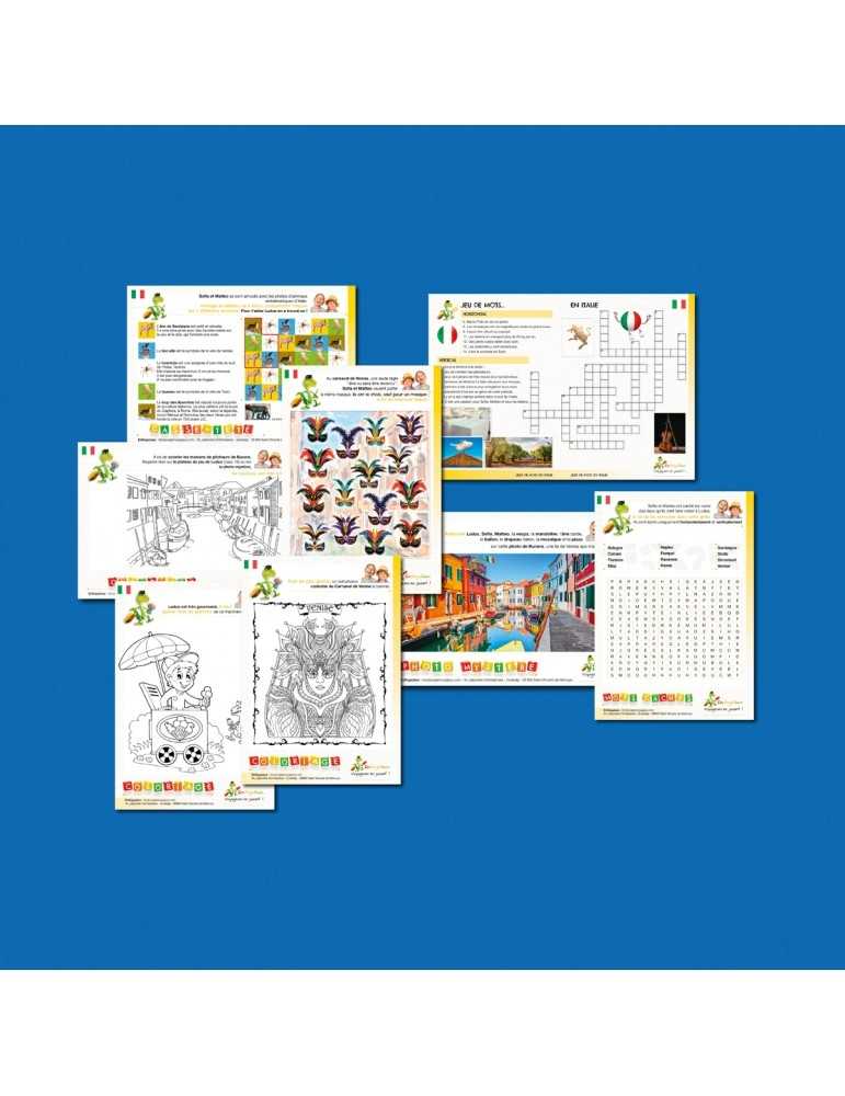 Contenu : le guide des parents qui décrit les différentes activités, - les livrets Ludus EXPLORATEUR, GASTRONOME, JOUEUR, ARTISTE et MUSICIEN & COMEDIEN pour découvrir l'Italie sous toutes ses facettes, - le Jeu de Ludus : un jeu de l'Oie à personnaliser avec le matériel inclus, - 1 loisir créatif (matériel inclus) : fabrication de tableaux en mosaïque, - 2 coloriages pour les enfants… et 1 pour les plus grands, - des jeux pour continuer le voyage : photo mystère, les doubles, casse-tête, mots cachés et mots fléchés.