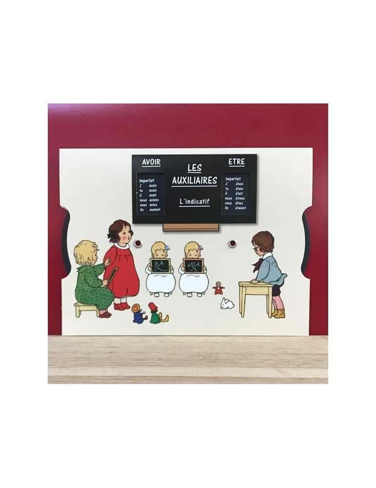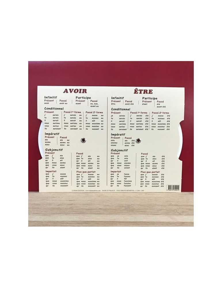 Il suffit que l'enfant tourne les deux rondelles du disque et tous les temps de l'indicatif des auxiliaires apparaissent dans une petite fenêtre.