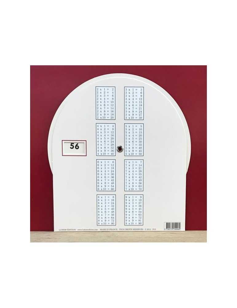 La réponse est au dos du disque. Si l'enfant a besoin de réviser, toutes les tables sont présentées au dos.