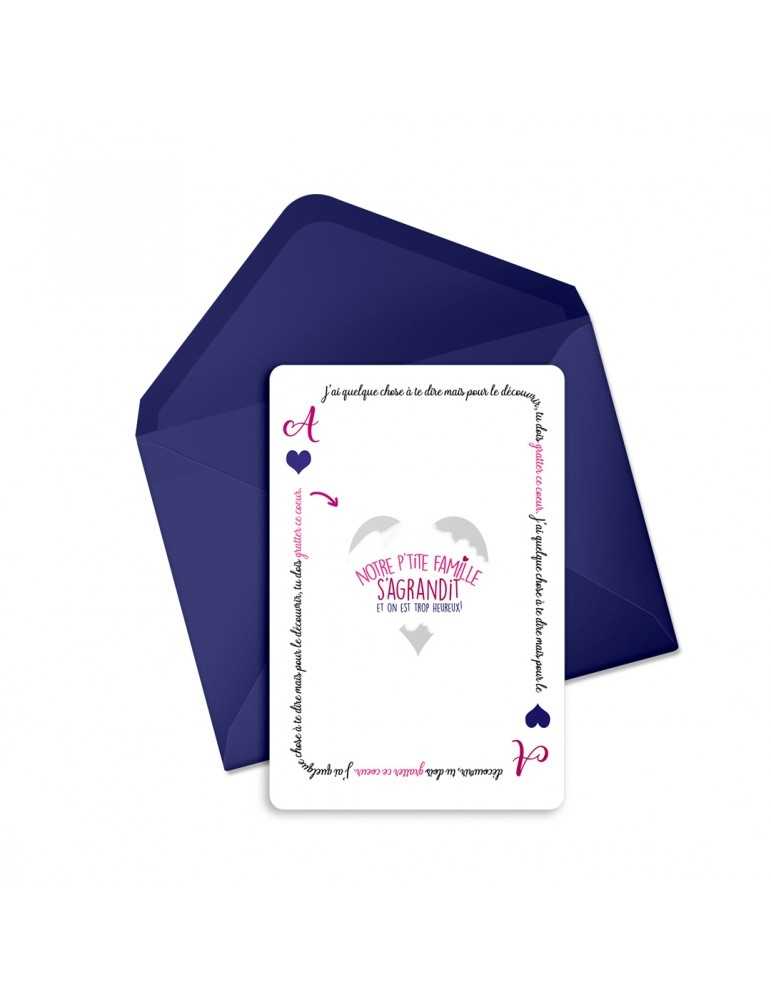Vous cherchez une façon originale pour une annonce à votre famille ou des amis! Voici une carte à gratter avec son enveloppe pour une annonce drôle et émouvante! Pour découvrir le message il vous suffit de gratter le coeur secret et le message sera alors dévoilé!