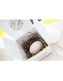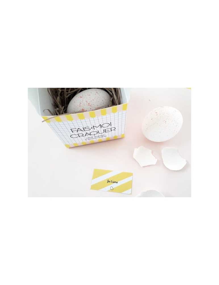 LA solution : la boîte à message œuf. Un œuf à briser avec, à l'intérieur le message de votre choix à personnaliser puis à glisser à l'intérieur de l'œuf.