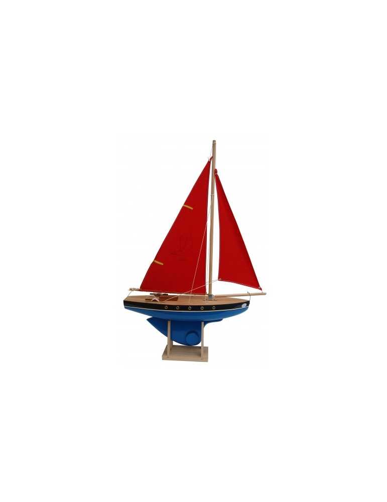 Voilier 502 - Coque bleue - Voile Rouge - 40 cm