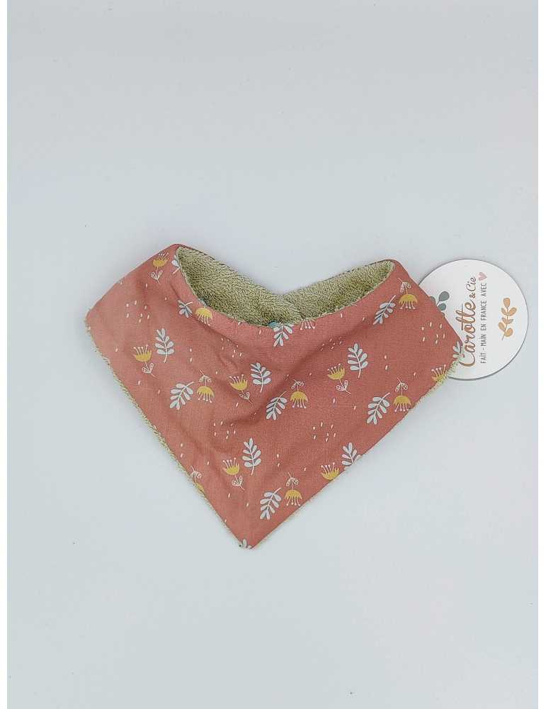 Adorable mini bavoir bandana orné de motifs fleurs d'automne.