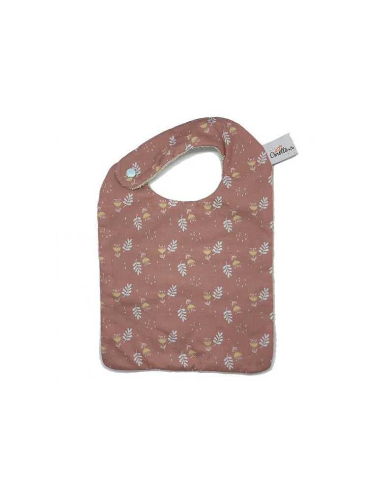 Ce grand bavoir bleu foncé à motifs fleurs d'automne rouge est à la fois esthétique, efficace et confortable. Il est assez large pour protéger efficacement le haut et le pantalon du bébé des éclaboussures durant le repas.