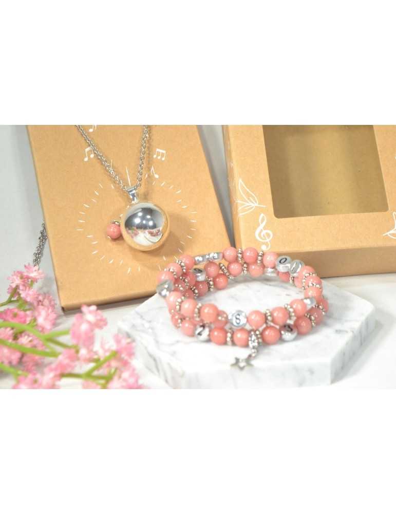Coffret cadeau Bola et bracelet d'allaitement en Quartz Rose
