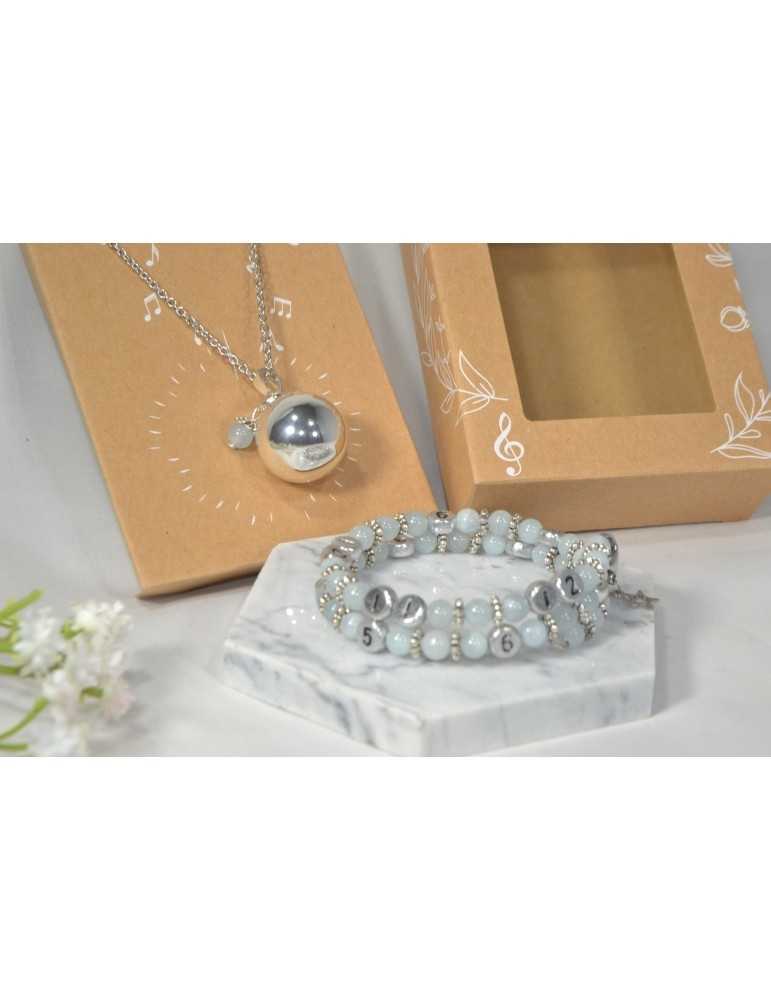 Coffret cadeau Bola et bracelet d'allaitement en aigue marine