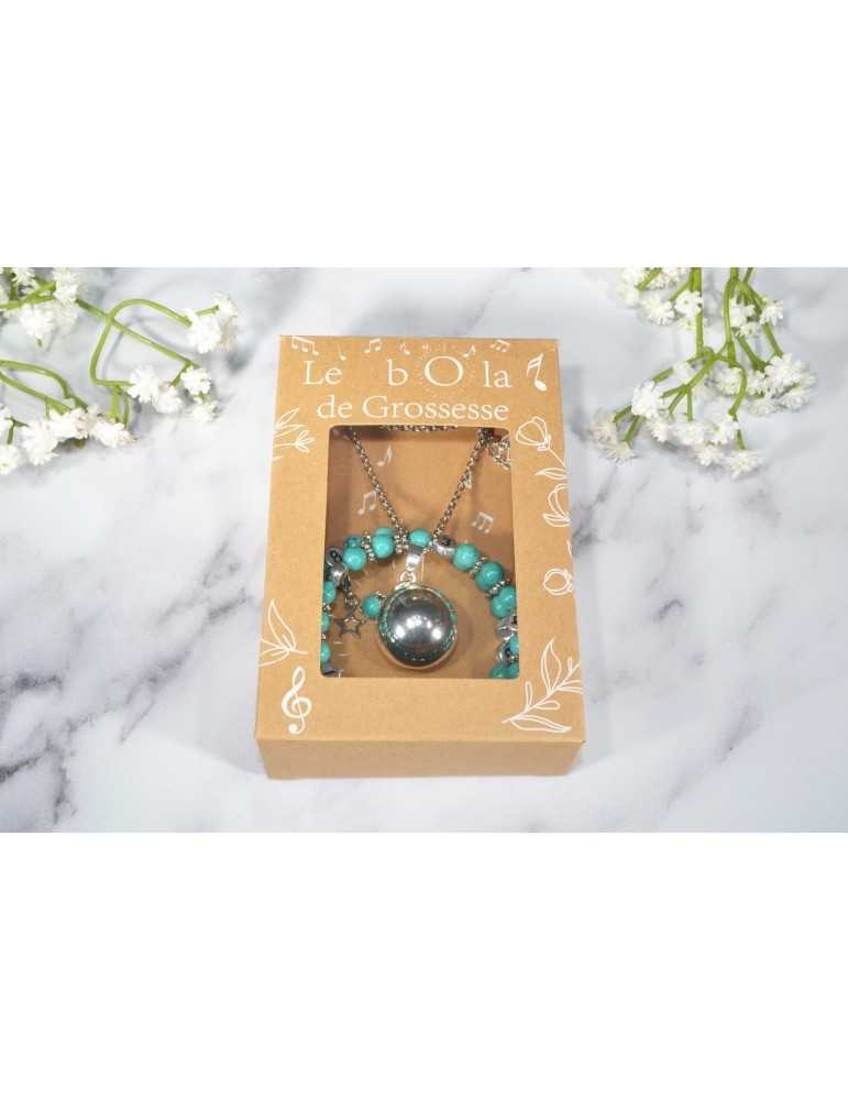 Coffret cadeau Bola et bracelet d'allaitement en Howlite teintée turquoise