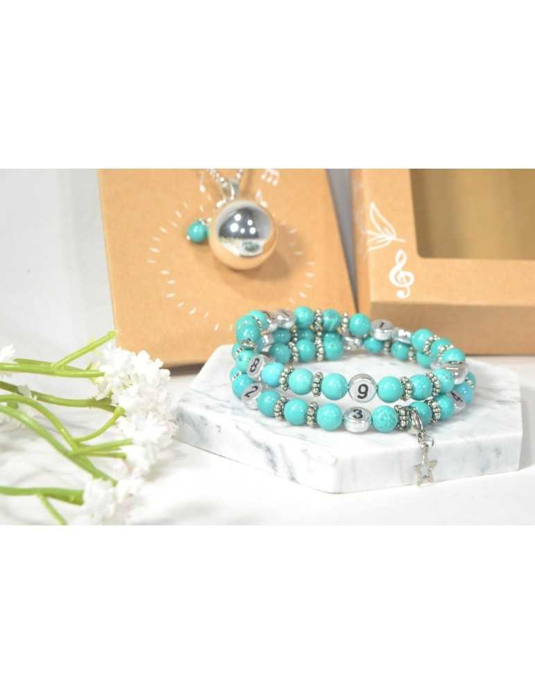 Coffret : bracelet d'allaitement + Bola - Howlite Turquoise