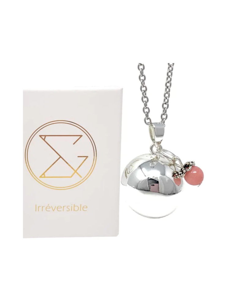 Bola de grossesse Eva 22MM perle quartz rose avec Chaine, 100% Plaqué Argent