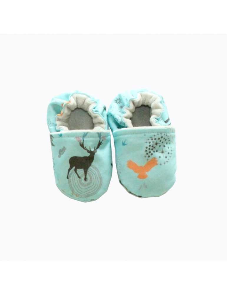 Sans cuir, juste du tissu coton et du tissu doudou, afin de garantir une souplesse inégalable. L'élastique rend l'enfilage facile et la tenue au pied parfaite.