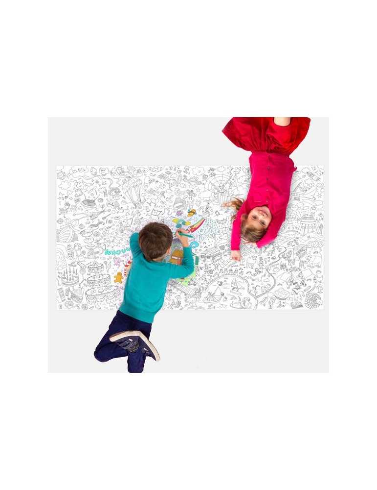 Un espace artistique sans limites pour colorier seul ou à plusieurs, à dérouler au sol, à accrocher au mur ou à utiliser en nappe.