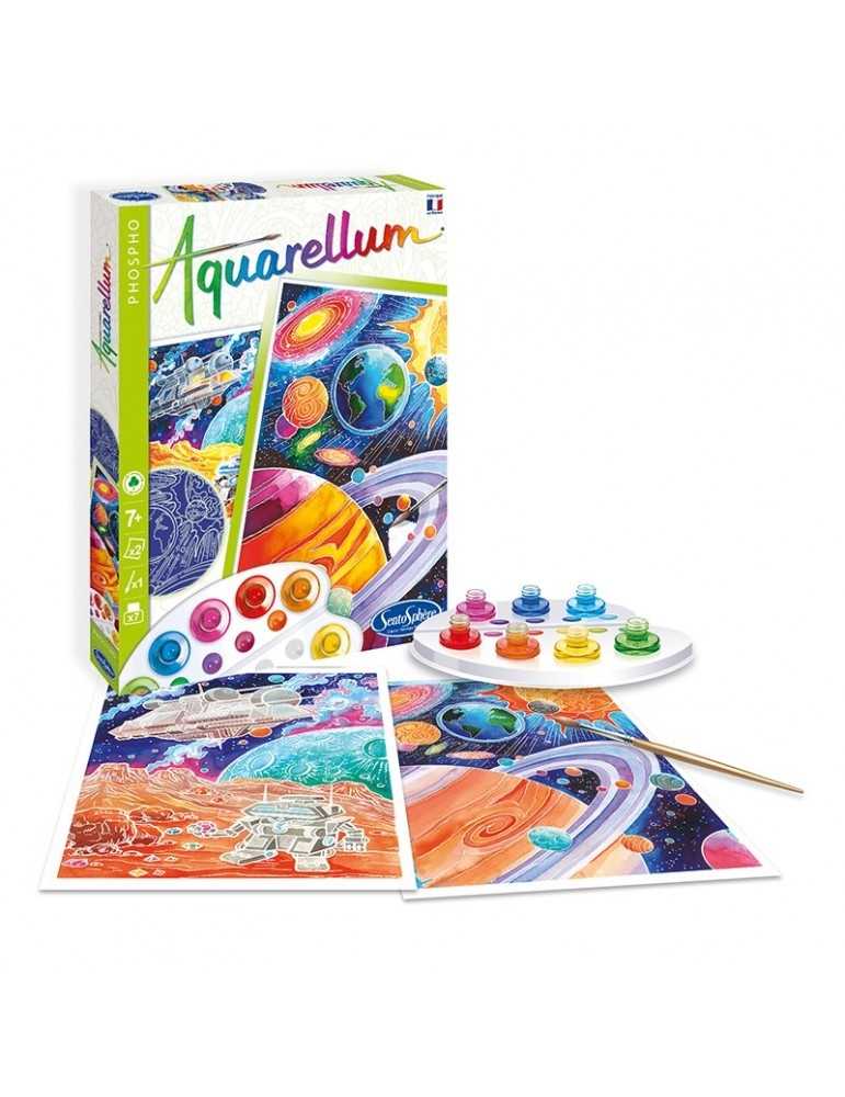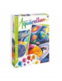 Peignez avec 7 encres aquarelles, sans pouvoir dépasser, ces deux magnifiques tableaux illustrant l'espace et ses planètes. Une fois la lumière éteinte, les contours brilleront de mille feux !