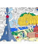 Plié dans une belle pochette colorée, ce poster vous emmène à la découverte de la célèbre capitale tout en coloriant : Notre-Dame, l'Arc de Triomphe, Saint Germain des Prés, la tour Eiffel, le Sacré-Coeur...