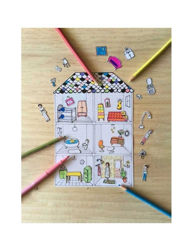 Il est possible de coller les meubles et les accessoires décoratifs, mais vous pouvez aussi simplement les installer pour pouvoir les déplacer et rejouer à l'infini. Une activité idéale pour occuper les enfants et stimuler leur créativité.