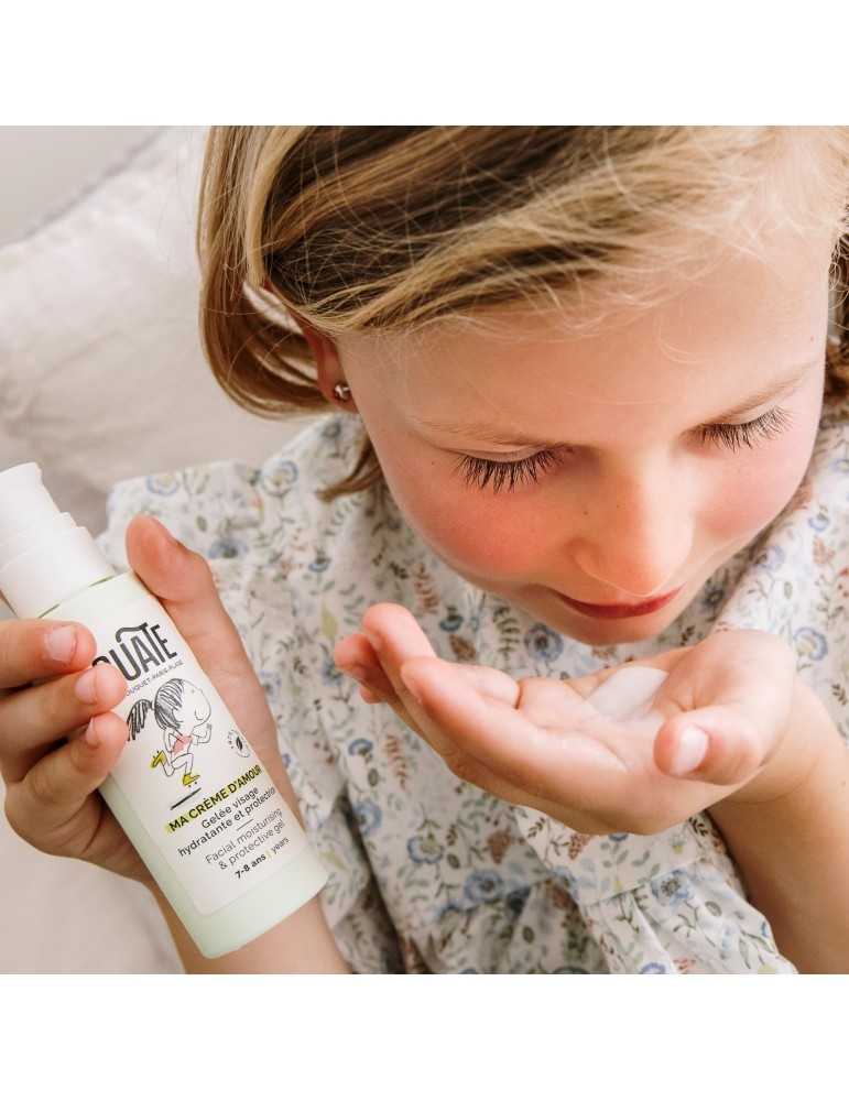 Ce coffret contient des produits doux et naturels, indispensables au rituel de beauté, pour garder une peau douce et fraîche au quotidien. Ils respectent la peau sensible de l'enfant. Mon Nettoyant Douceur purifie l'épiderme en profondeur. Le gel en eau Crème d'amour pour sa part hydrate et protège la peau de toute pollution.
