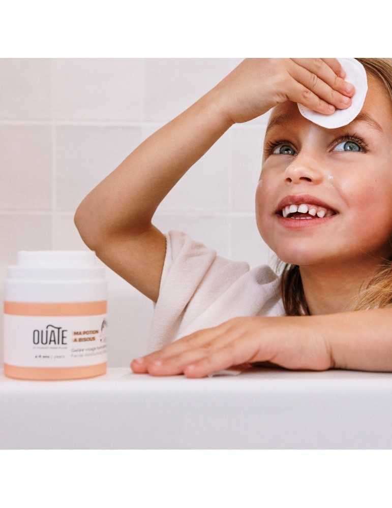 Ce coffret contient des produits doux et naturels, indispensables au rituel de beauté, pour garder une peau douce et fraîche au quotidien. Ils respectent la peau sensible de l'enfant. Mon Nettoyant Douceur élimine efficacement les impuretés. La gelée Ma Potion à Bisous hydrate et protège l'épiderme de la saleté.