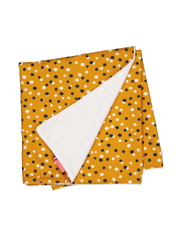 Sa grande taille et son côté polaire tout doux protégera bébé du froid. Son tissu couleur moutarde à pois tout mignon complimentera la décoration de la chambre de bébé.