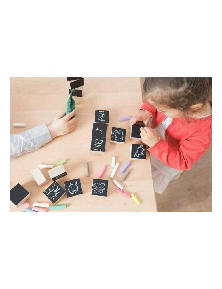 Des tonnes de combinaisons sont possibles avec ce lot de cubes de bois avec une face tableau noir.