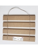 Une toile Canvas 100% coton imprimée et vernie collée sur ces planchettes, ensuite reliées entre elles par une ficelle de jute agrafée au dos.