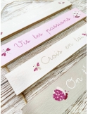 4 planchettes de médium de 6mm d'épaisseur, mesurant 24,5x3,3cm. Une toile canvas 100% coton imprimée et vernie collée sur ces planchettes, ensuite reliées entre elles par une ficelle de jute agrafée au dos.