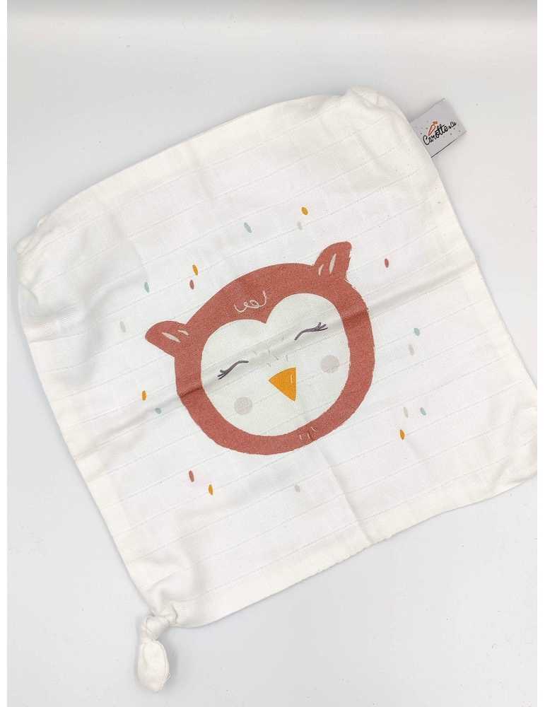 Ultra-doux grâce à son coton biologique GOTS, le doudou plat Hibou en double gaze de coton est parfait comme premier doudou à câliner pour votre bout de chou.