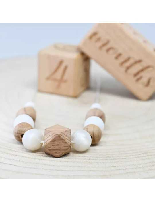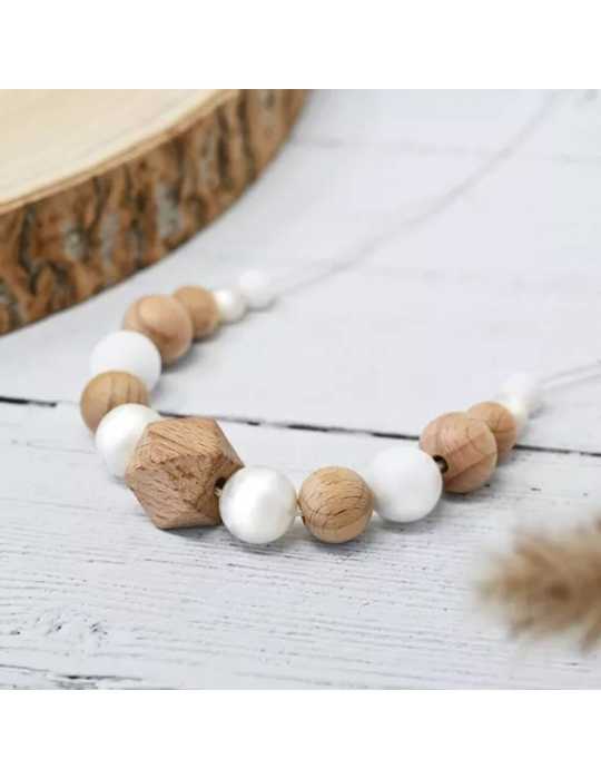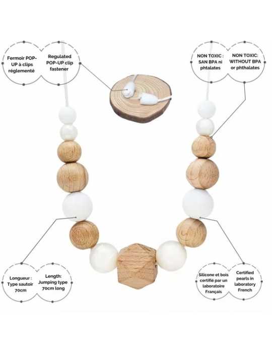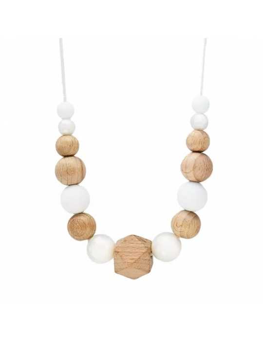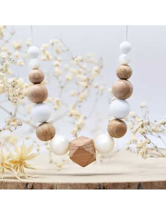 Collier d'allaitement et de portage - Blanc effet nacre et bois