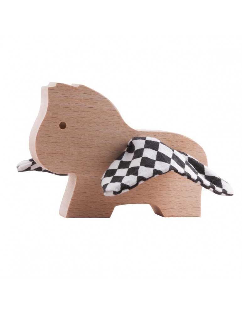 Cheval en bois avec des ailes en coton bio, adapté aux enfants en bas âge.