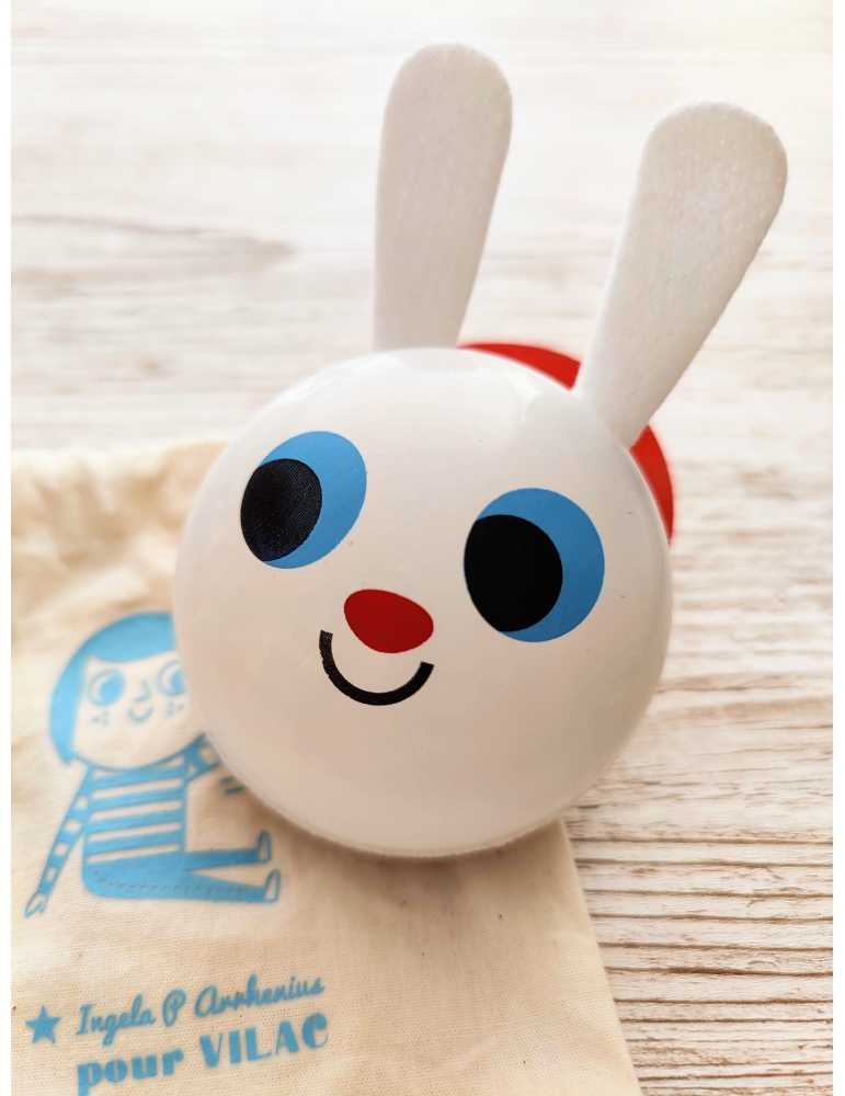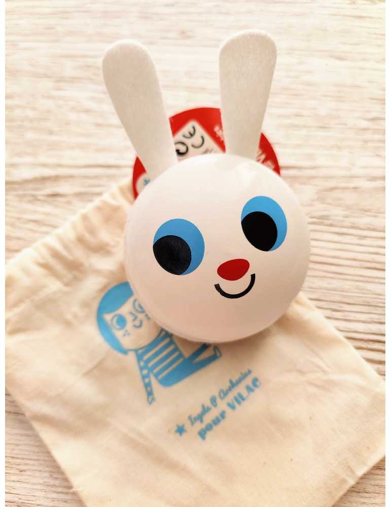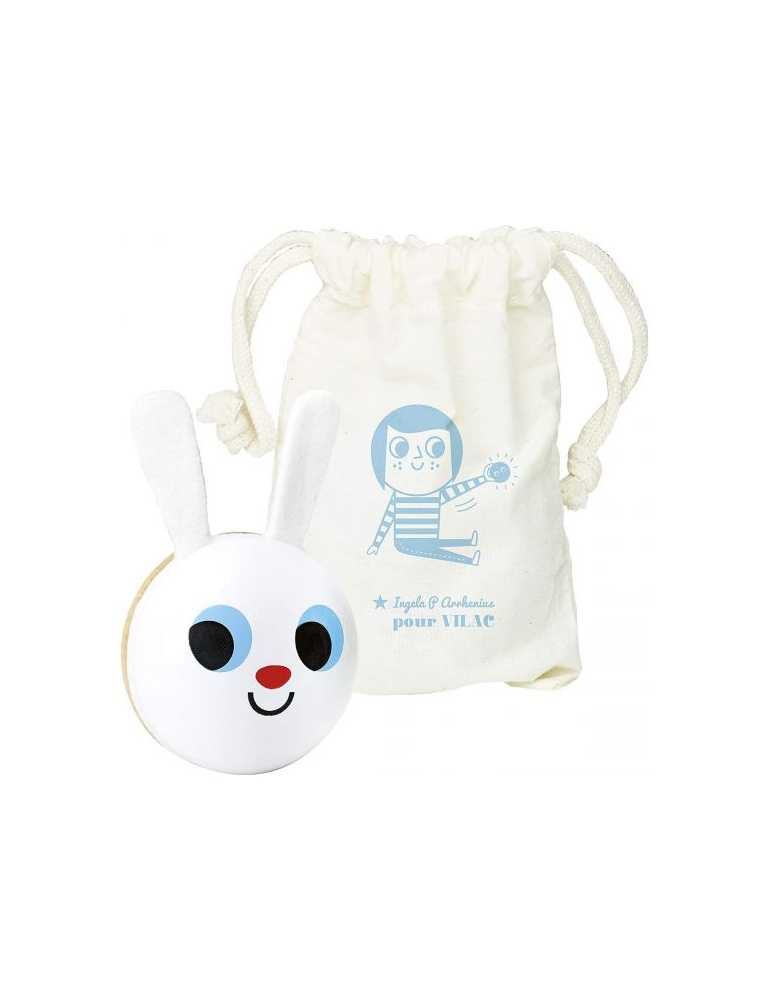 Un joli hochet-maracas Lapin dessiné par Ingela et 100% Made In France.