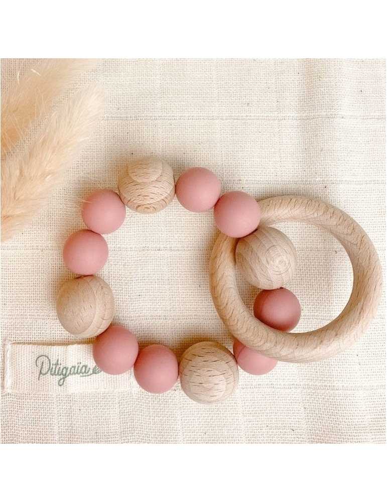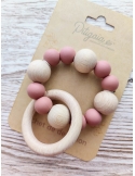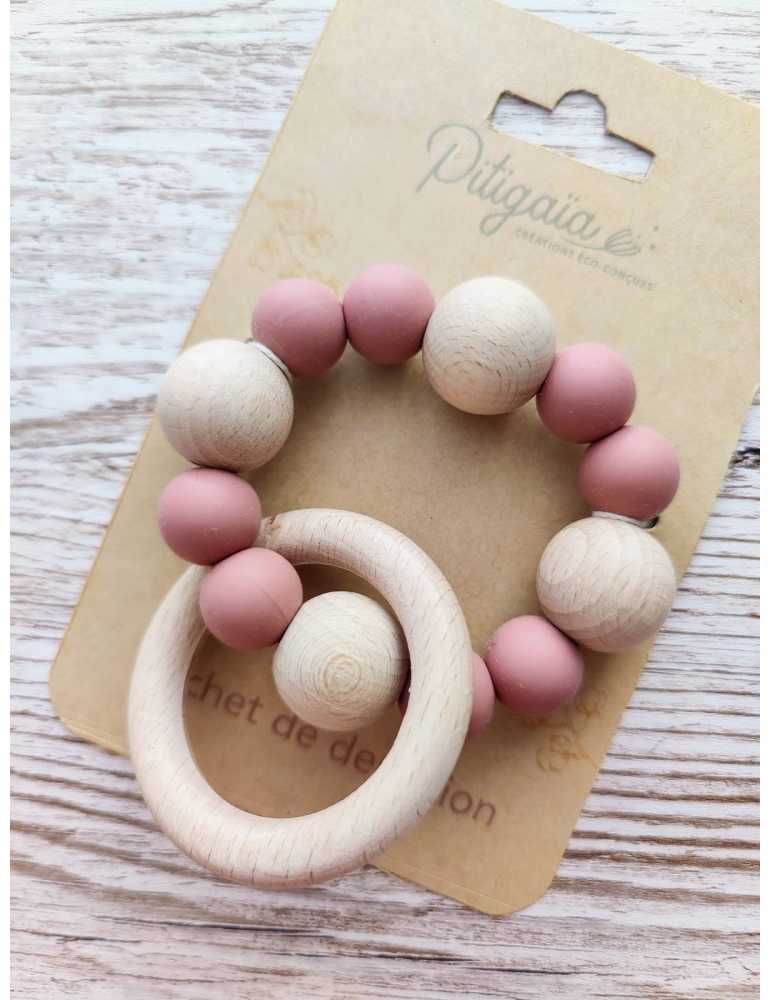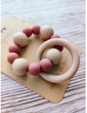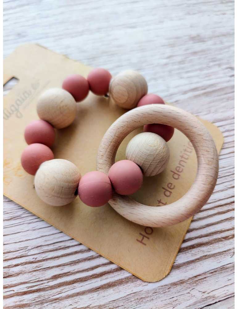 Le hochet de dentition soulage les tout-petits lors des poussées dentaires grâce à son anneau en bois et ses perles de silicone (testé en laboratoire français).
