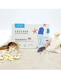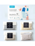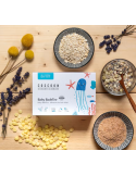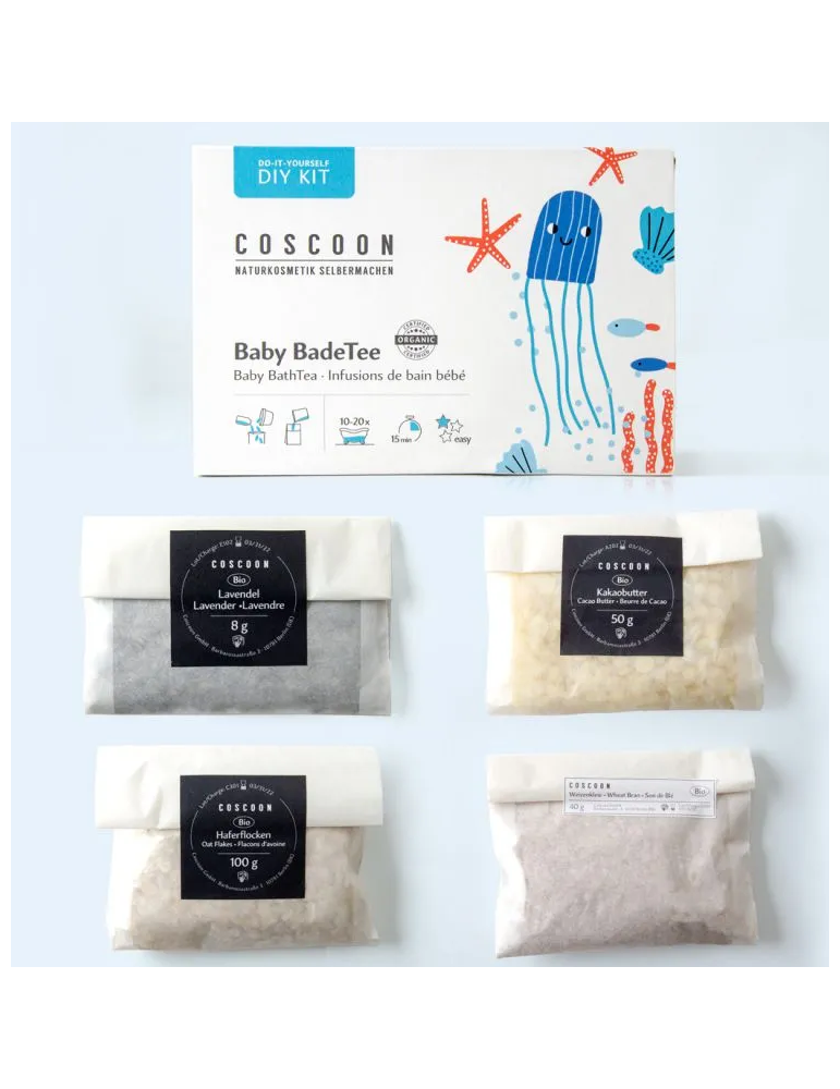 Petite astuce : avant de sortir votre enfant de l’eau, vous pouvez caresser délicatement sa peau avec le sachet, afin d’y déposer tous les bienfaits de cette combinaison bio. Bébé ressortira du bain apaisé, et avec une peau toute douce.