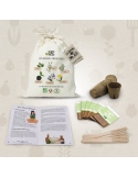 Made in Nantes, graines AB et reproductibles, papier et bois certifié PEFC, sac en coton bio, entreprise engagé pour le zéro plastique.