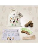Made in Nantes, graines AB et reproductibles, papier et bois certifié PEFC, sac en coton bio, entreprise engagé pour le zéro plastique.
