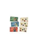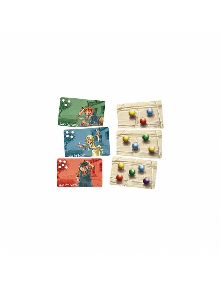 Chacun dispose de 5 billes de départ de couleurs différentes qu’il dispose dans sa zone de départ. On reçoit également 3 cartes qui indiquent nos objectifs : sur ces cartes sont dessinées des combos de 3,4 ou 5 billes.