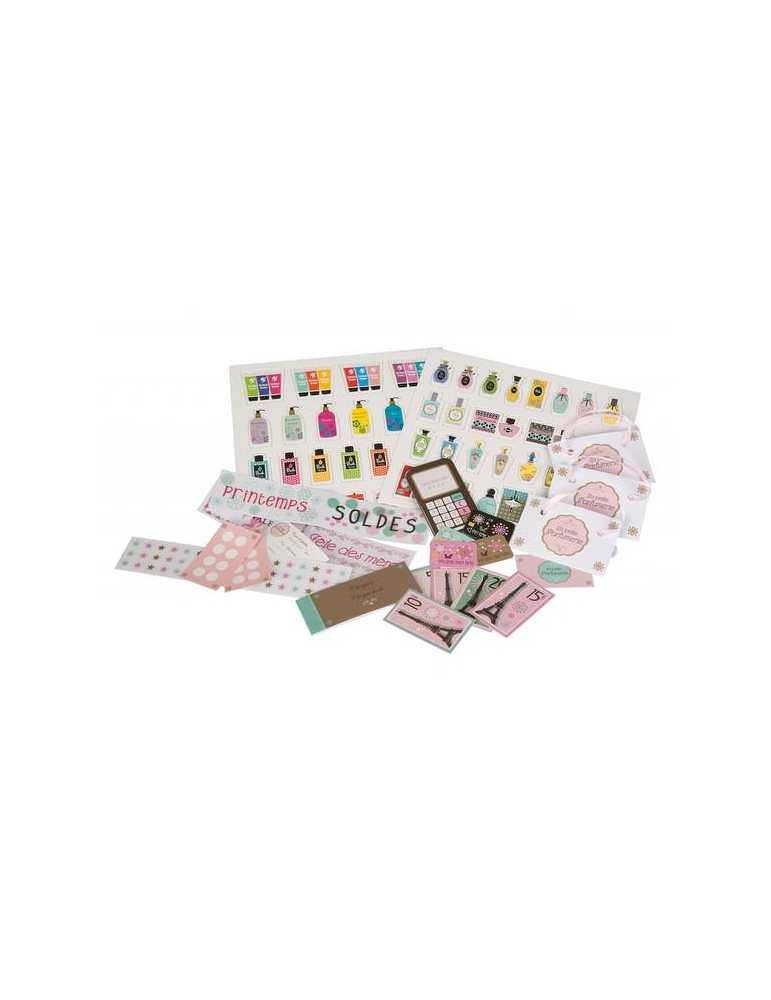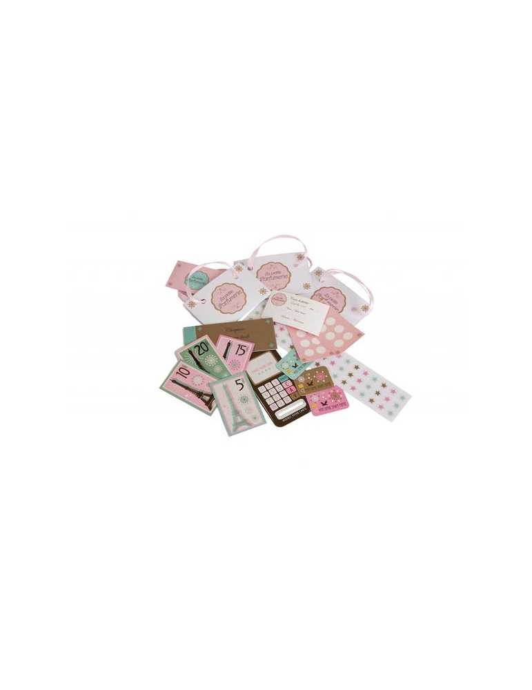 Etiquettes de prix, carte bancaires, billets, chéquier, sacs, stickers,... Rien ne manque pour jouer à la marchande.