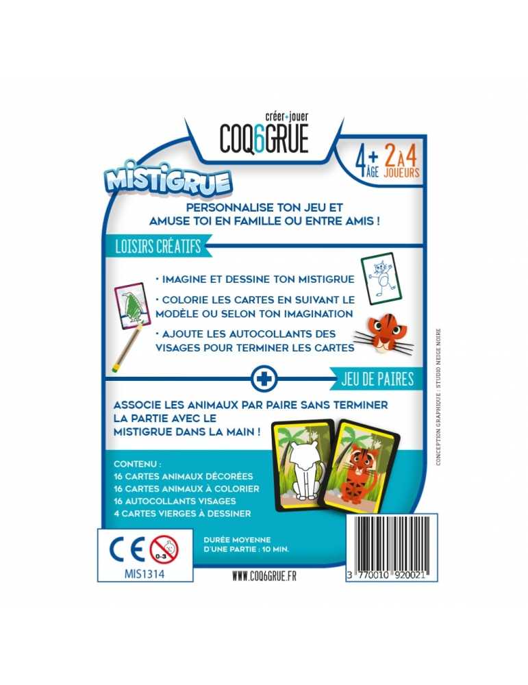 L'enfant dispose de 4 cartes pour dessiner le Mistigrue et il n'en faudra qu'une pour jouer, il peut donc réaliser plusieurs versions pour changer de Mistigrue à chaque partie !