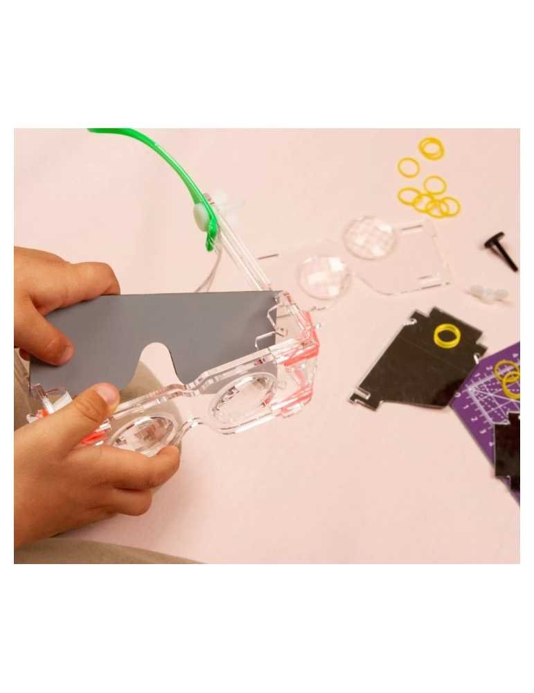 Après avoir assemblé les lunettes ainsi que le boitier qui va avec, tu vas pouvoir placer un jeu de lentilles optiques et de miroirs.
