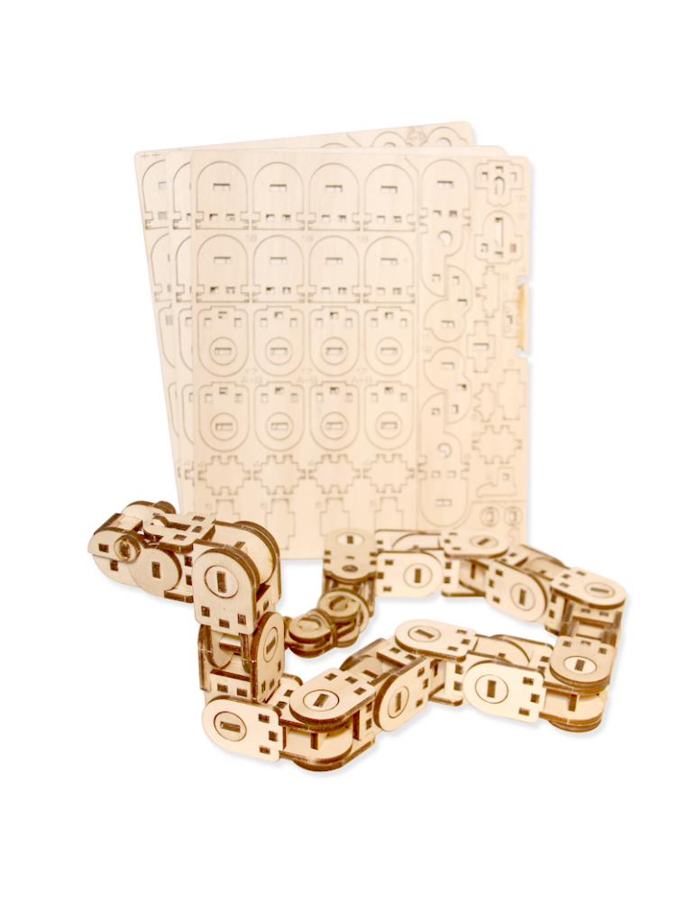 Le Serpento est une création modulaire entièrement articulée avec mâchoires à élastique intégrées. Il plaira aux amateurs de jeux de construction et de mécanique.