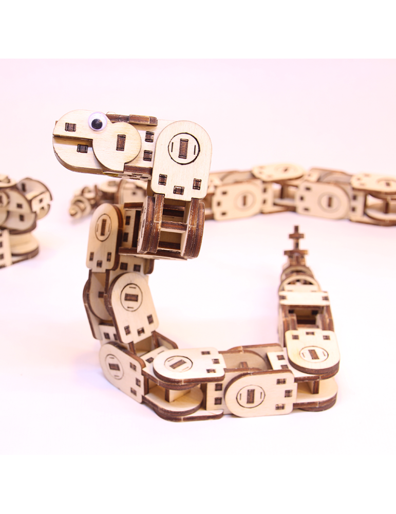 Serpent modulaire entièrement articulé avec mâchoire à élastique (type marionnette). Kit à monter sans colle.