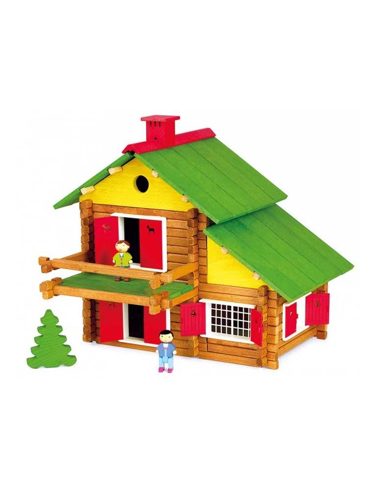 Mon chalet en bois - jeu de construction, 175 pièces : en bois naturel et teinté avec une notice de montage .