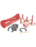Un jeu d'anneaux et un jeu de fers à cheval, le tout dans un sac super facile à trimballer ! Vous voilà armée pour des duels de lancer entre amis ou en famille !