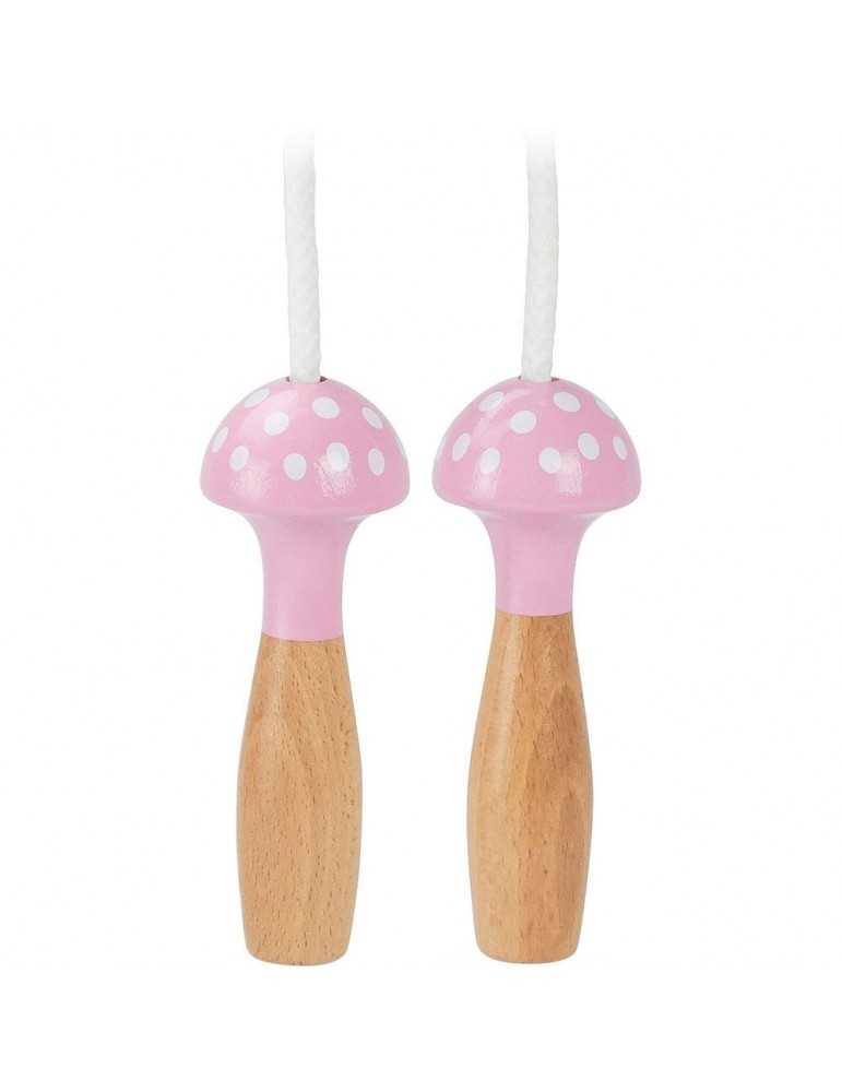 Corde à sauter rose en bois massif laqué. Poignées à pois adaptées aux plus petites mains.