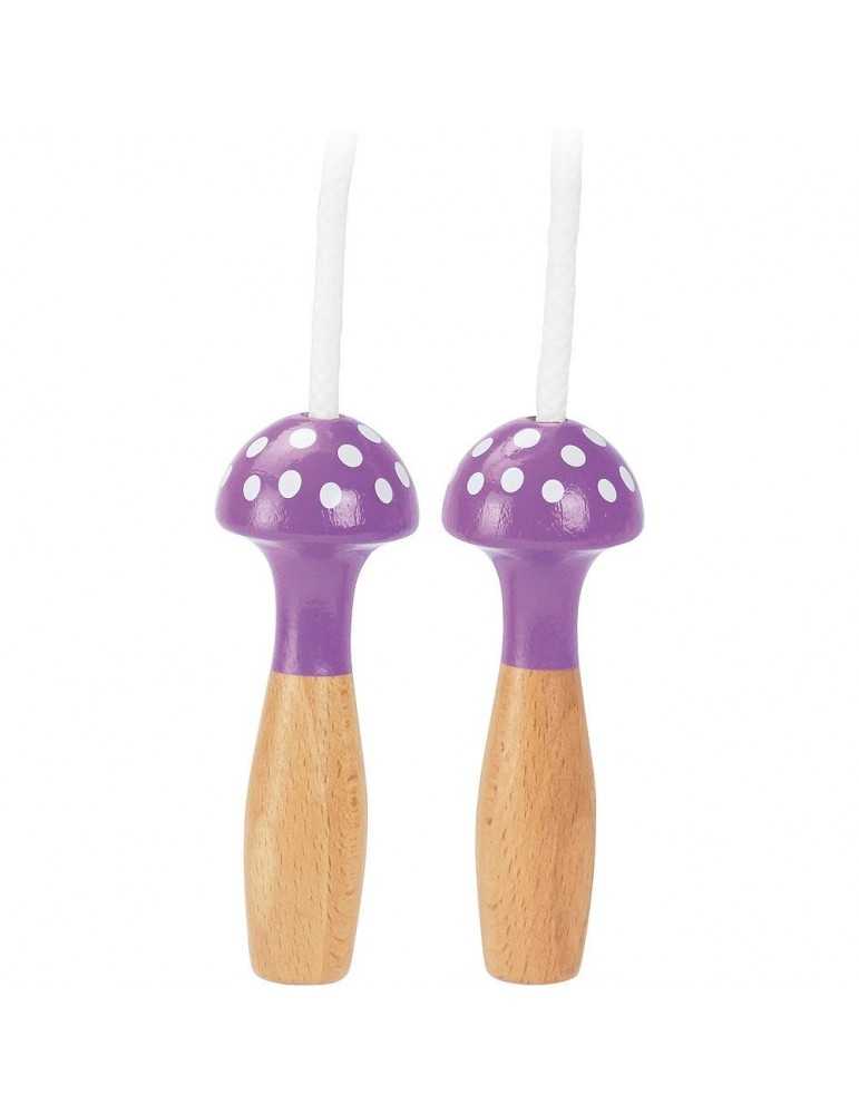 Corde à sauter mauve en bois massif laqué. Poignées à pois adaptées aux plus petites mains.