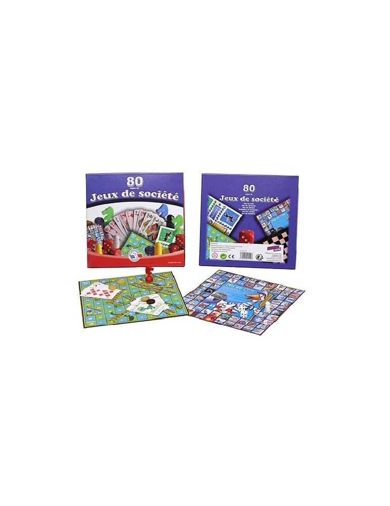 Coffret de jeux comprenant 80 règles de jeux traditionnels: Jeux de l'oie, jeux de chevaux, jeux de dames, jeux d'échelles et de serpents, jeux de cartes, jeux de 9 familles