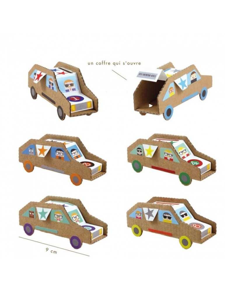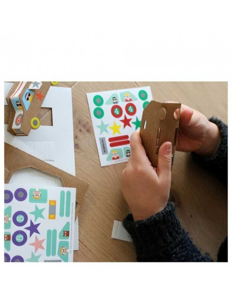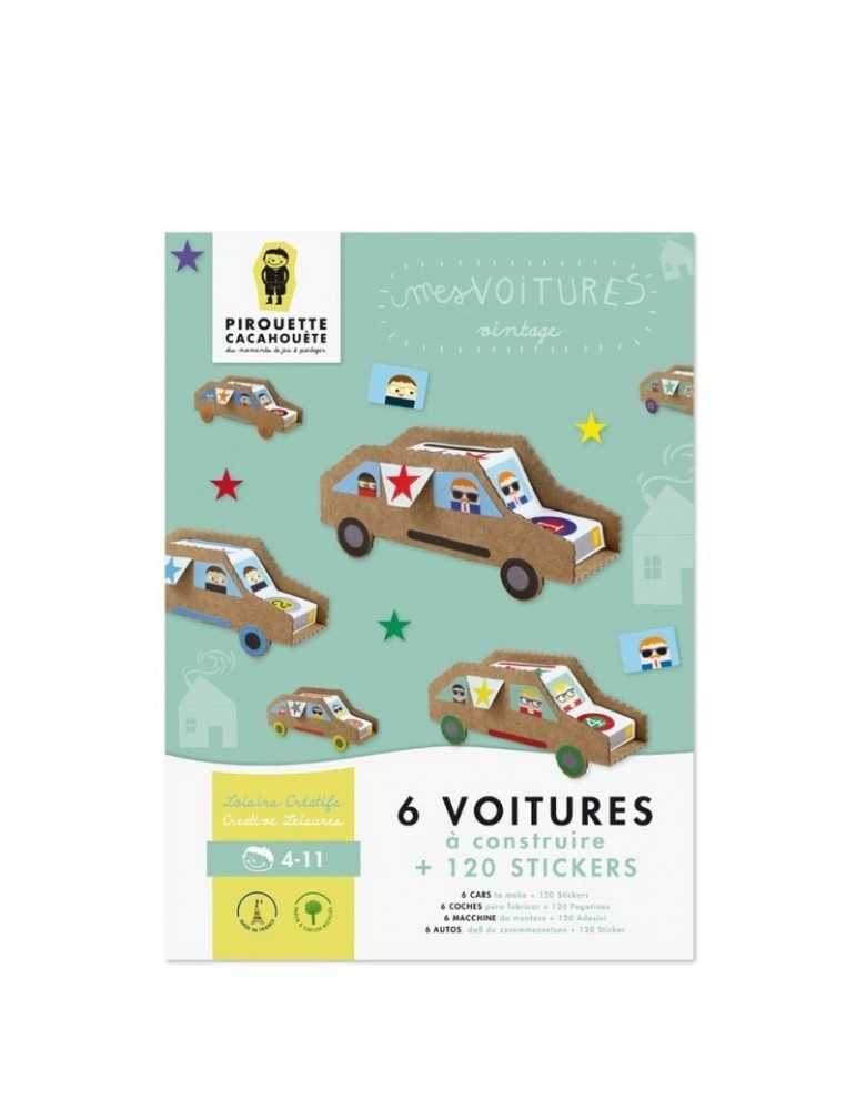 Contenu : 6 voitures à fabriquer + 6 planches de 20 stickers chacune