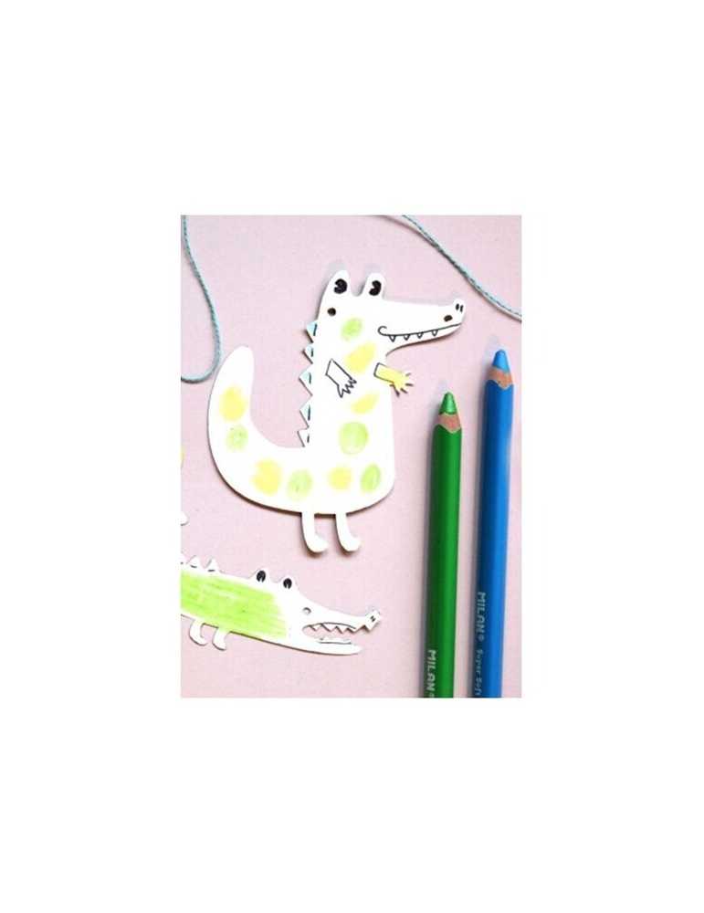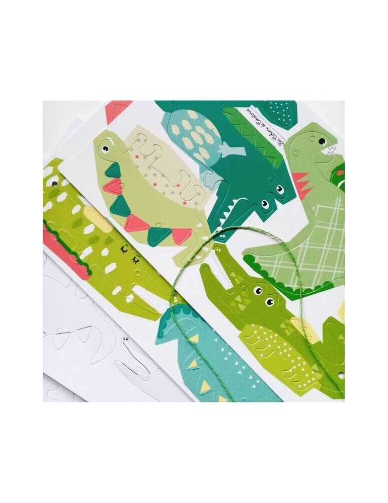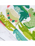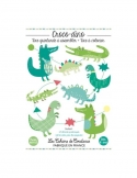 Ce kit contient 24 formes de dinosaure et de crocodile prédécoupées, dont 12 en couleur et 12 à colorier.