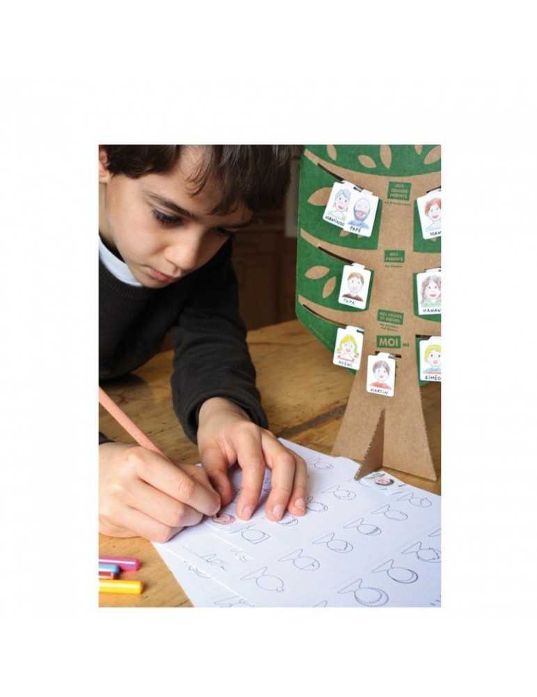 Une activité pédagogique pour mieux apprendre à se situer dans sa famille (familles simples ou recomposées) et partager un moment privilégié entre générations. Il s'agit de retrouver, parmi les 50 portraits en papier, ceux qui ressemble le plus aux membres de la famille; de les colorier pour leur donner vie et de les positionner dans les bonnes branches de l'arbre généalogique.