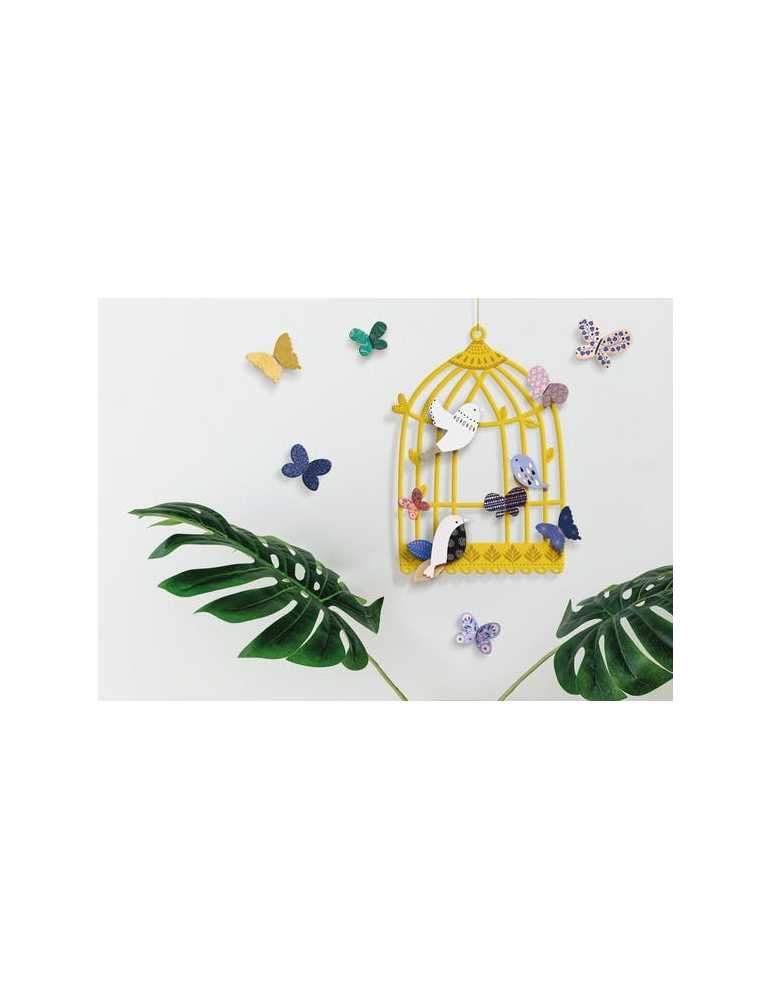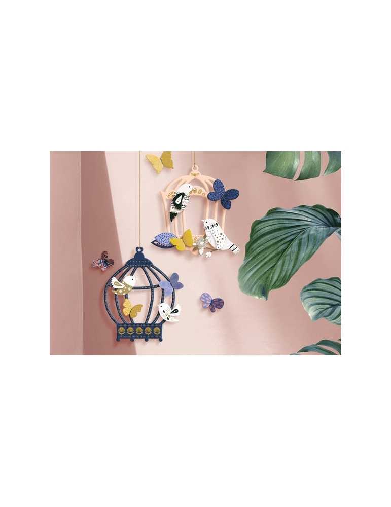 Ce coffret déco invite à réaliser un mobile composé de magnifiques cages à oiseaux et à créer d’incroyables guirlandes pleine d’oiseaux et de papillons multicolores. Installez avec amour les oiseaux dans leur nouvelle maison... vous les écoutez chanter?