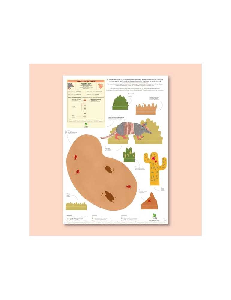 Instructions: Se munir d’une paire de ciseaux et d’un tube de colle ! Découper les différents éléments. Plier sur les pointillés. Coller l’animal et les éléments sur la base du décor. Conserver les observations sur l’animal !